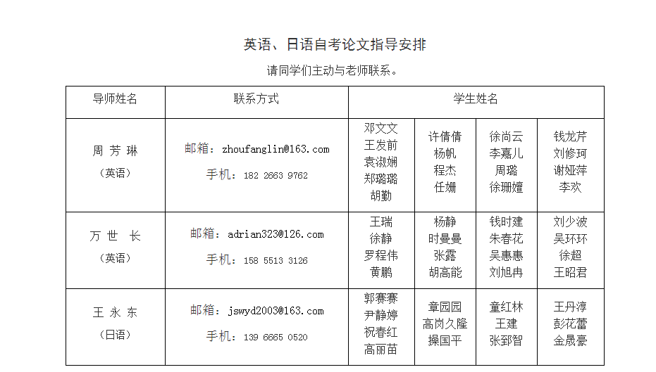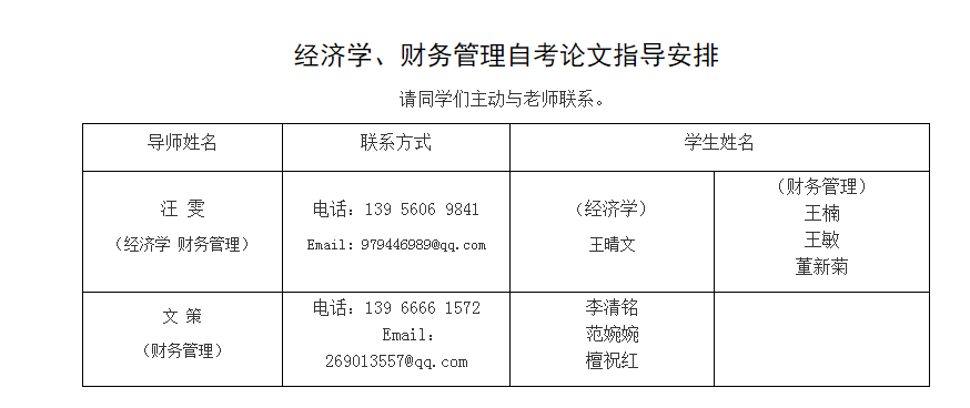 現將自考行政管理、英語、日語、經濟學、財務管理專業論文指導老師聯系方式公布如下,請已在網上報名2023年(上)上述五個自考專業論文答辯且交費成功的自考生查閱并主動與導師聯系。