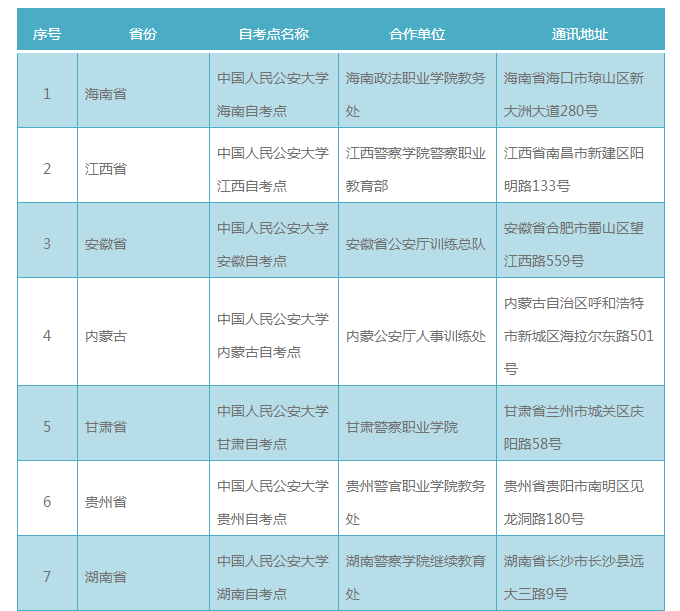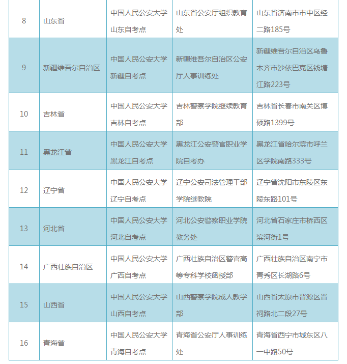 自學考試開設專業為公安管理專業(專科、專科起點本科),公安管理專業只招收公安機關在職人民警察,教學站點覆蓋共計16個省市(自治區),分別是: